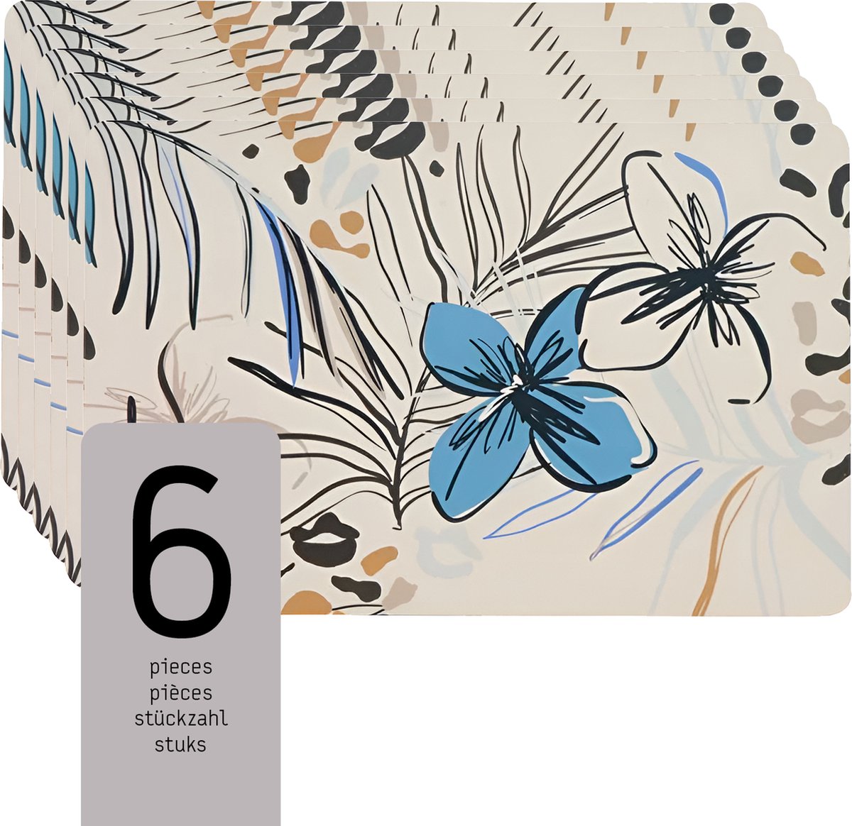 Gemaakt van stevig kunststof – materiaal: kunststof. Afmeting: 43×30 cm. Kleur: wit met blauw bloemenmotief. Vorm: rechthoek. Kenmerken: waterafstotend en direct schoon te maken. Zorg dat je ze niet langdurig blootstelt aan hitte boven de fabrikantindicatie (zoals hete pannen direct) – kleine panjes kunnen beter op een hittebestendige onderzetter. Voor dagelijks onderhoud: afnemen met vochtige doek, geen wasmachine nodig.