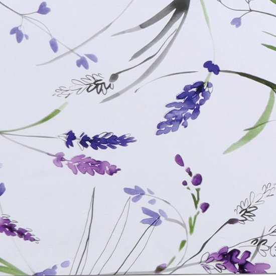 Breng sfeer én gemak naar je eettafel met dit afwasbare PVC tafelzeil van Raved. Het romantische lavendelbloemen-design op wit geeft je interieur een frisse uitstraling, terwijl het perfect is voor dagelijkse én feestelijke momenten.