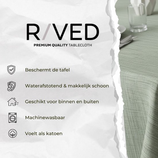 Met dit hoogwaardige tafelzeil van het merk Raved kies je voor een slimme oplossing die zowel mooi oogt als functioneel is. Het tafelzeil is gemaakt van PVC, waardoor het eenvoudig schoon te maken is en bestand tegen dagelijkse gebruikssporen. De linnenlook in groen geeft jouw tafel een natuurlijke uitstraling — alsof je een luxe tafelkleed hebt, maar dan zonder het gedoe.