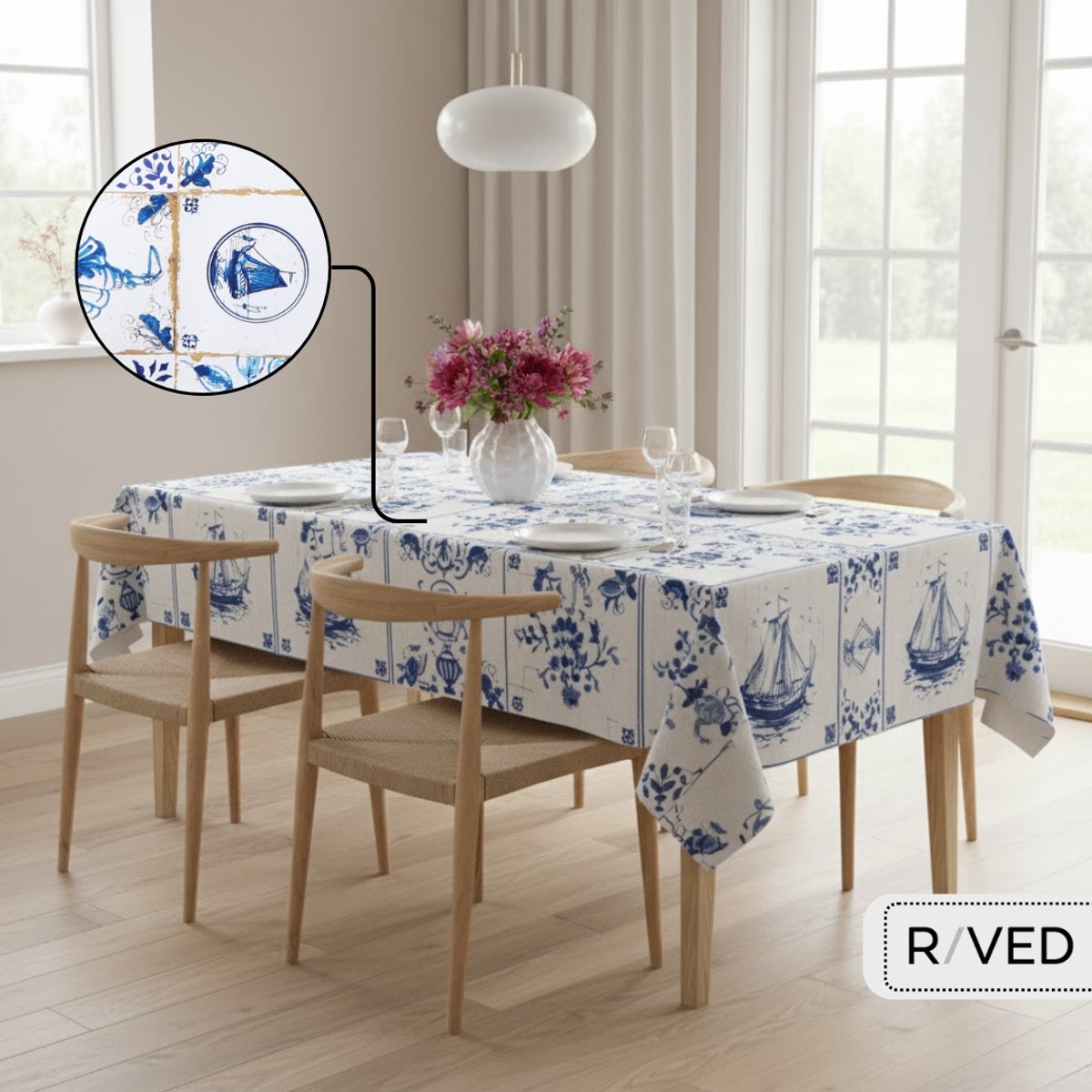 Maak van iedere maaltijd of bijeenkomst een moment om naar uit te kijken met het premium tafelzeil van Raved met Delfts Tegels-design. Dit tafelzeil combineert stijlvol Hollands motief, functioneel materiaalgebruik en slimme onderhoudsvriendelijkheid – precies wat je zoekt wanneer je tafel er zowel mooi uit moet zien als praktisch in gebruik moet zijn.