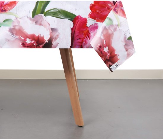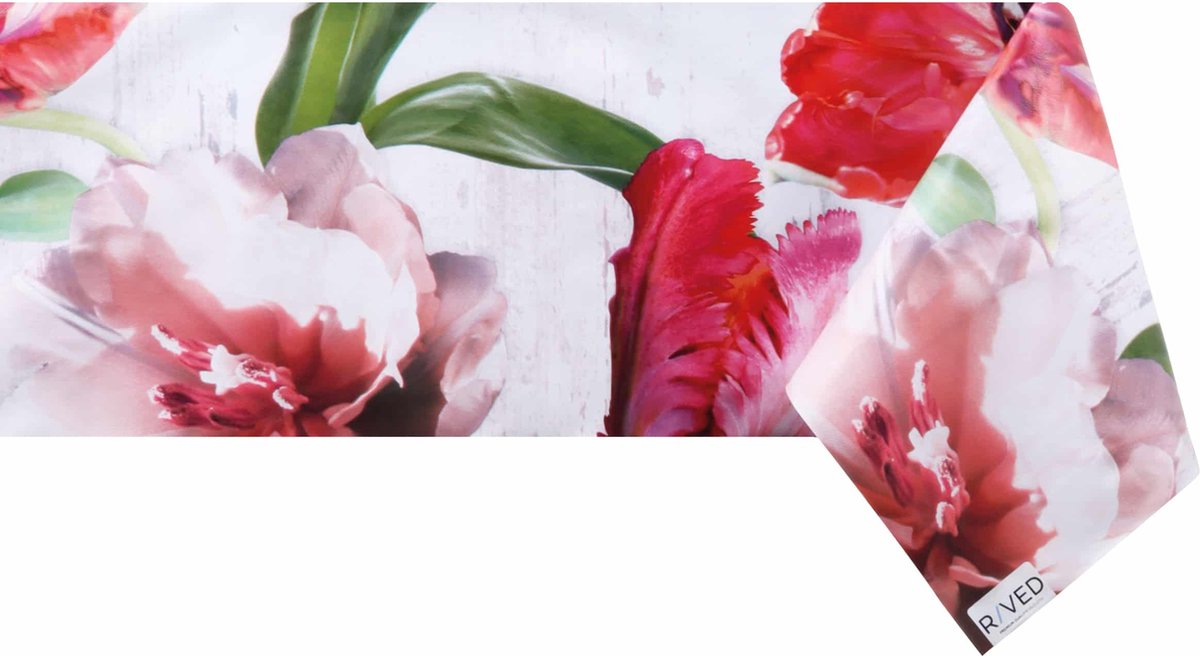 Met dit afwasbare PVCtafelzeil van Raved geef je je tafel direct een stijlvolle upgrade met een tulpenmotief in rood. Bied je tafel optimale bescherming tegen vlekken én slijtage, terwijl sfeer en gemak hand in hand gaan.